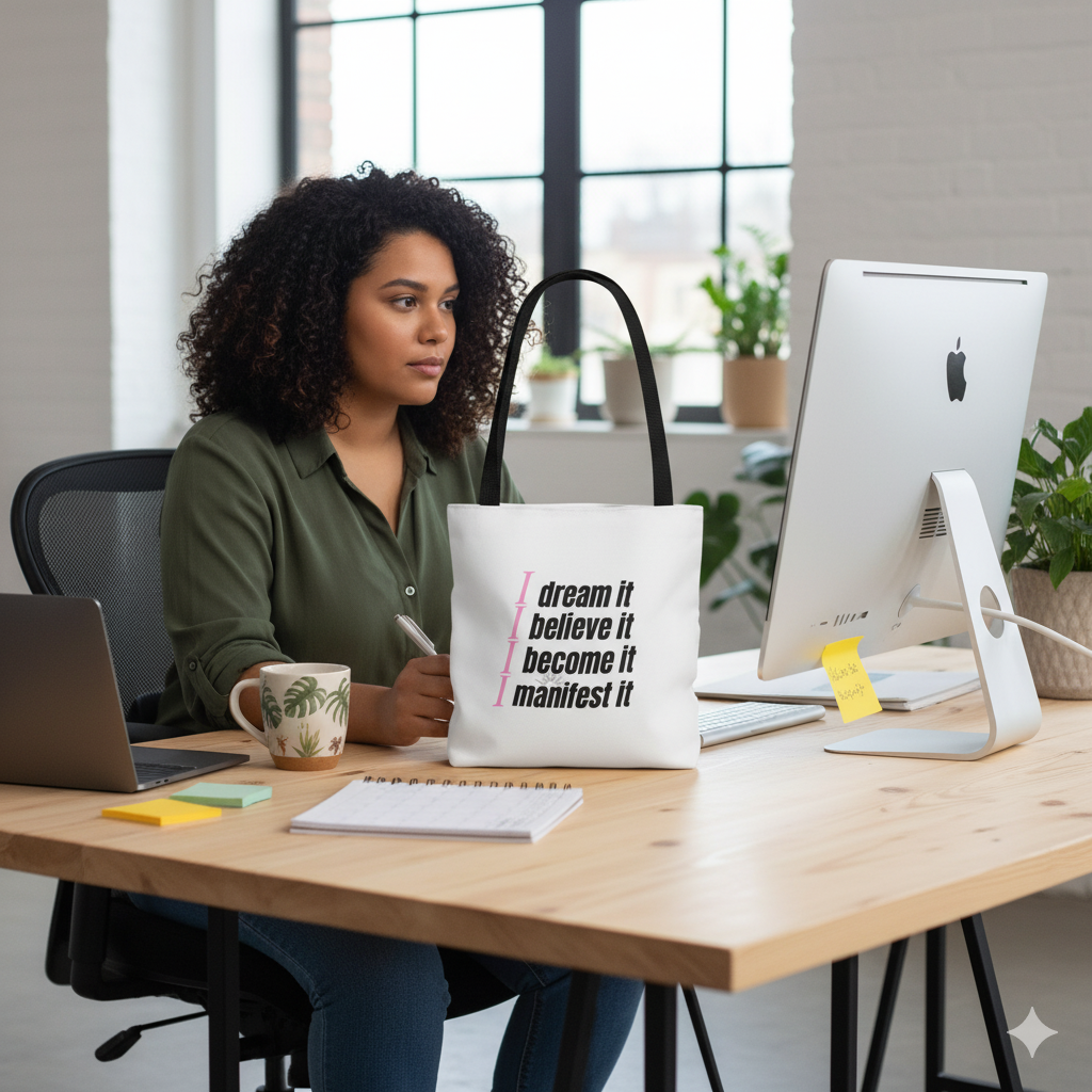 Make it a true one-of-a-kind accessory. This personalized tote bag features your name in an elegant script, making it a powerful piece of manifestation apparel. In addtion, it makes the ultimate gift for a graduate, a new business owner, mompreneur or any woman ready to embrace her “Unstoppable” season.